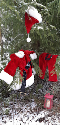Joulupäivänä oli hiukan lunta maassa, että sain kuvattua joulupukin loman alkaneen. Instassa sain hauskan viestin kuvan yhteyteen, jossain hiipii joulupukki alusvaatteisillaan.