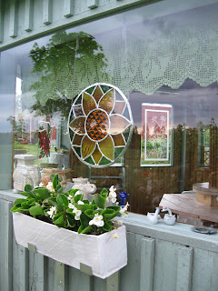 Huvimajan kukkatelineillä kasvavat valkoiset annansilmät ihan itse tekemissäni keramiikkaruukuissa =)
