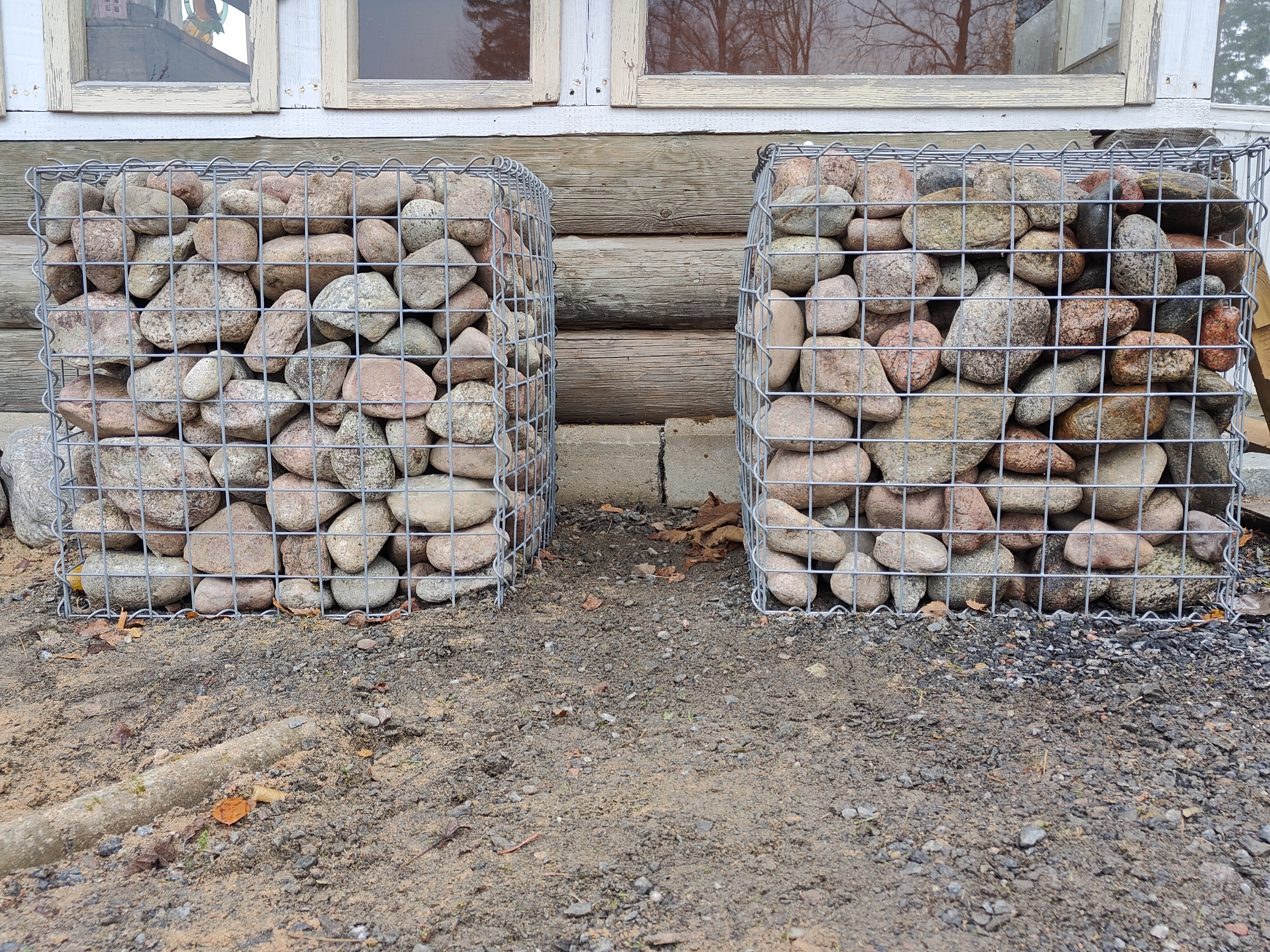 Sen tuloksena oli, että koko alue tyhjennettiin pikkukivistä ja näin saimme täytettyä kaksi kivikoria. Tämä kohde jää odottamaan ensi kevättä, uutta hiekkakuormaa ja uusia ideoita.